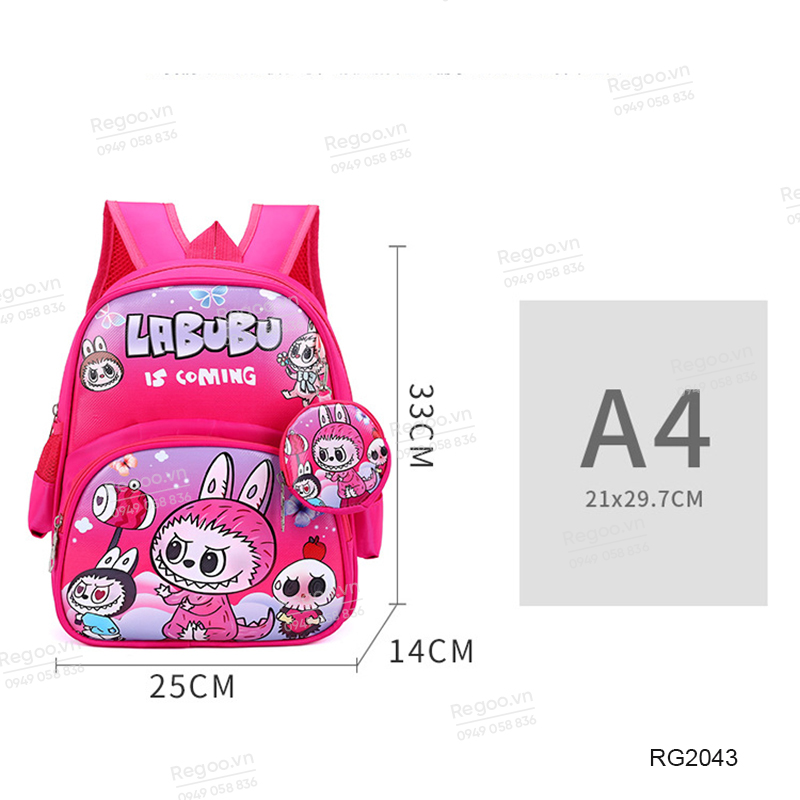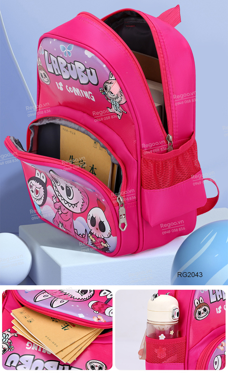 - Họa tiết Labubu hoạt hình nổi bật, giúp chiếc balo nhìn vui mắt và dễ tạo hứng thú cho bé khi tự chuẩn bị đồ.