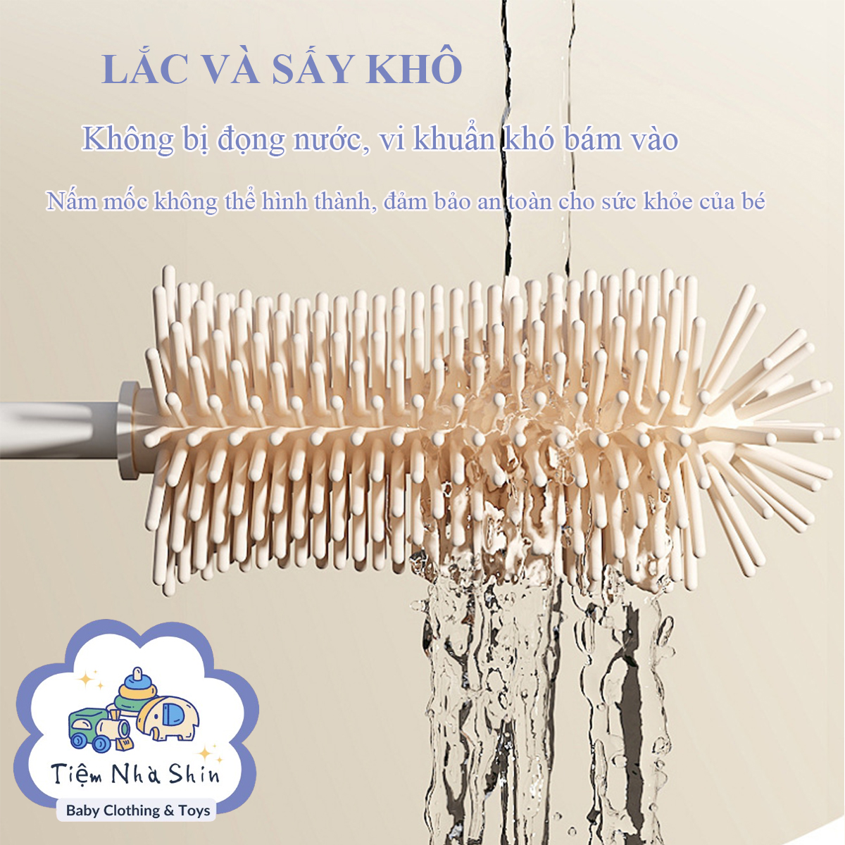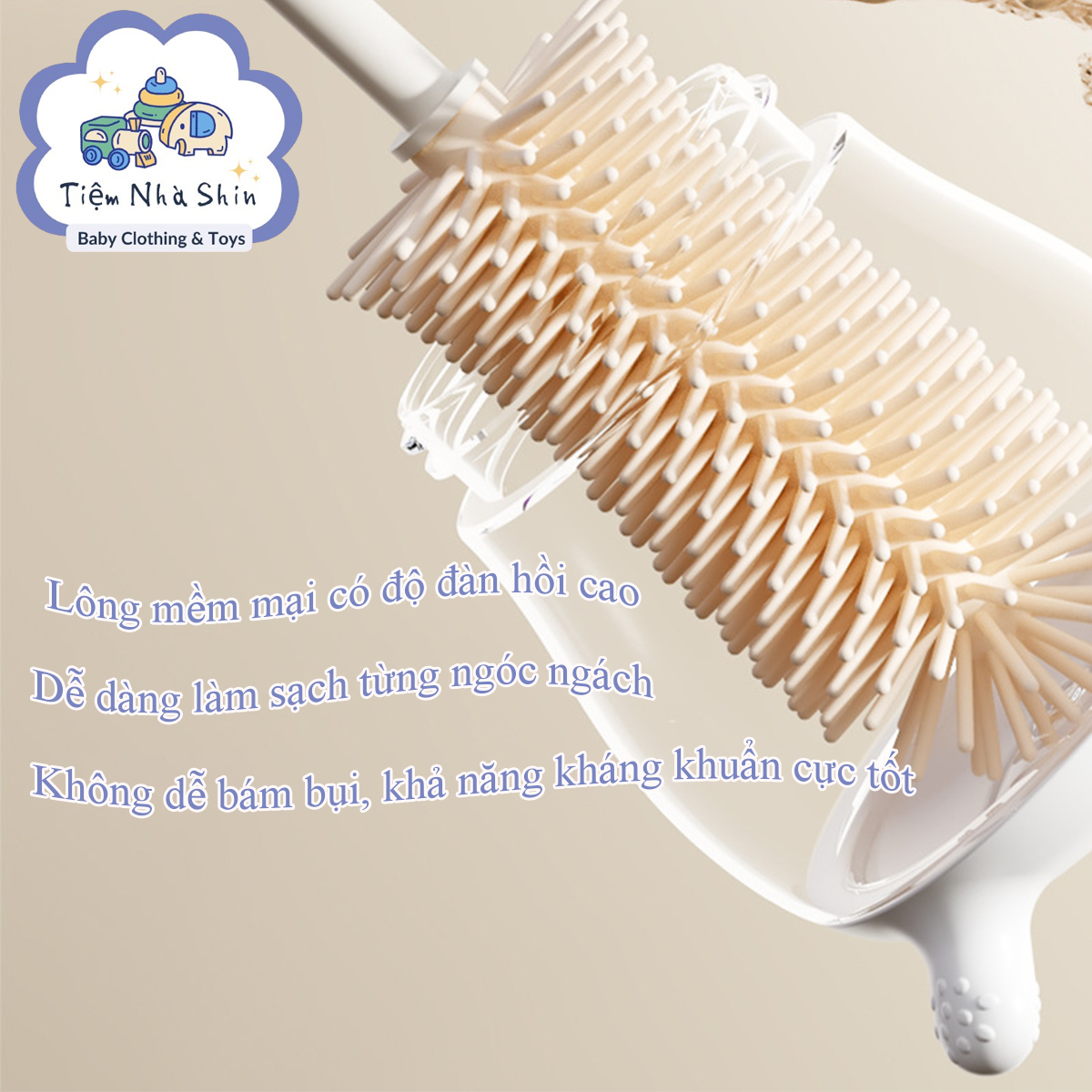 · Thiết kế cầm tay gọn, tiện dùng cho góc rửa bình sữa, cốc hút hoặc bình nước của bé