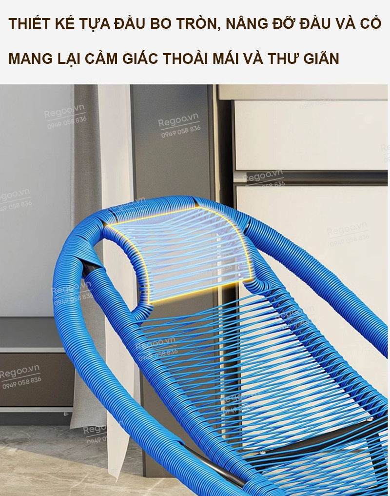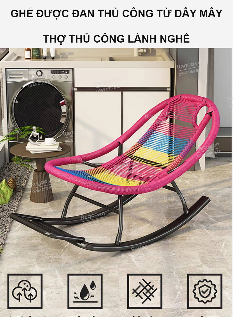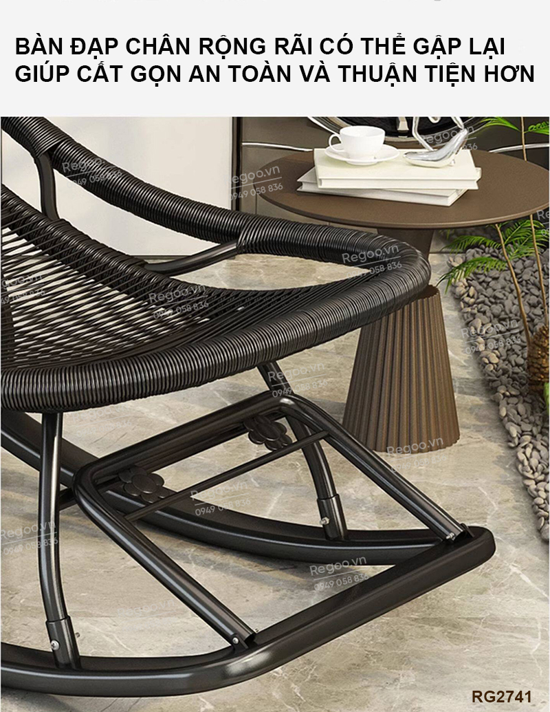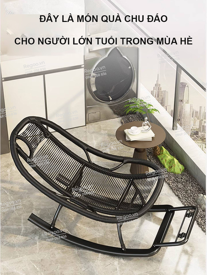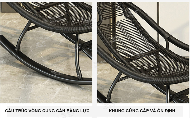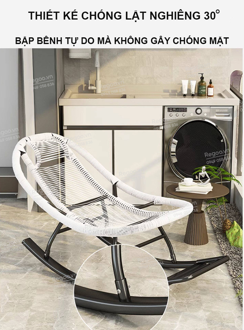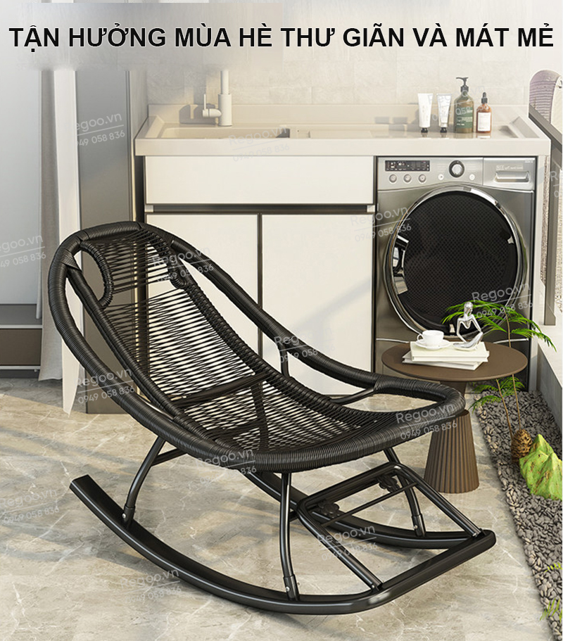 Ghế bập bênh Regoo RG2741, khung kim loại đan mây, bập bênh thư giãn 30°, ghế nằm lười ban công ngủ trưa, ghế rocking chair khung kim loại đan dây cho phòng khách sân vườn