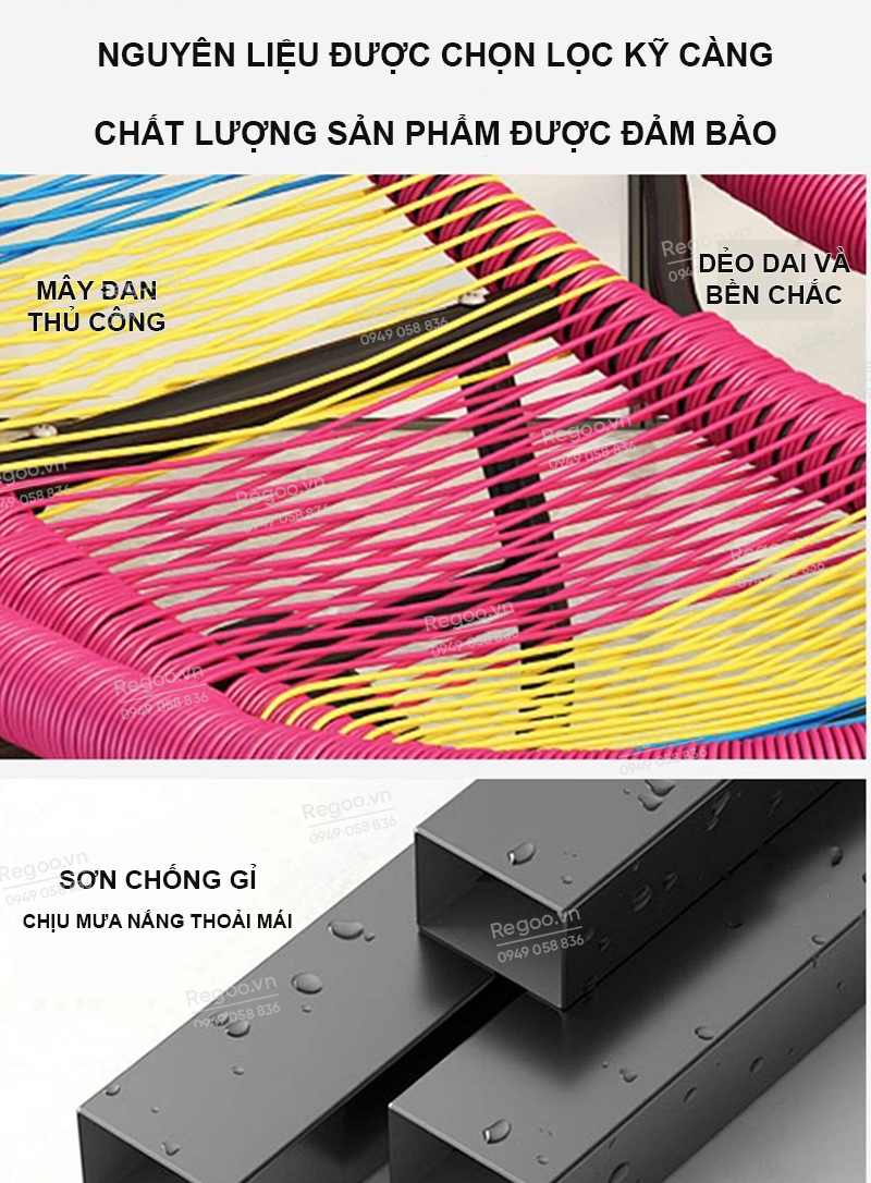 ✅ Khung kim loại, mây đan thoáng
