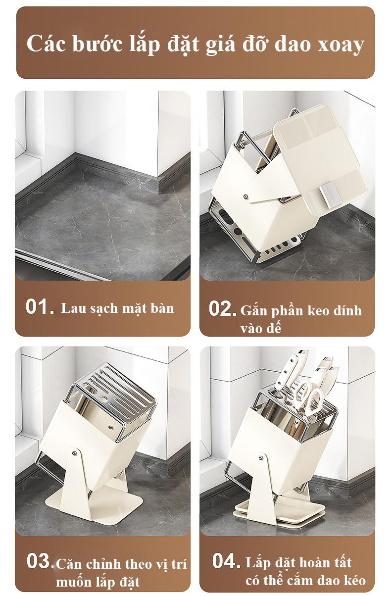 Giữ dao kéo gọn một chỗ sẽ giúp khu sơ chế bớt rối và mặt bàn bếp khô ráo hơn. Mẫu giá đỡ dao bếp này hợp cho gia đình muốn lấy dao nhanh khi nấu ăn, đồng thời giữ khu đặt dao trông sạch và ngăn nắp hơn mỗi ngày.