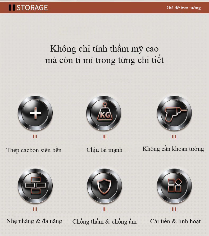 Chịu lực tham khảo khoảng 5kg, phù hợp nhóm dụng cụ bếp dùng hằng ngày.