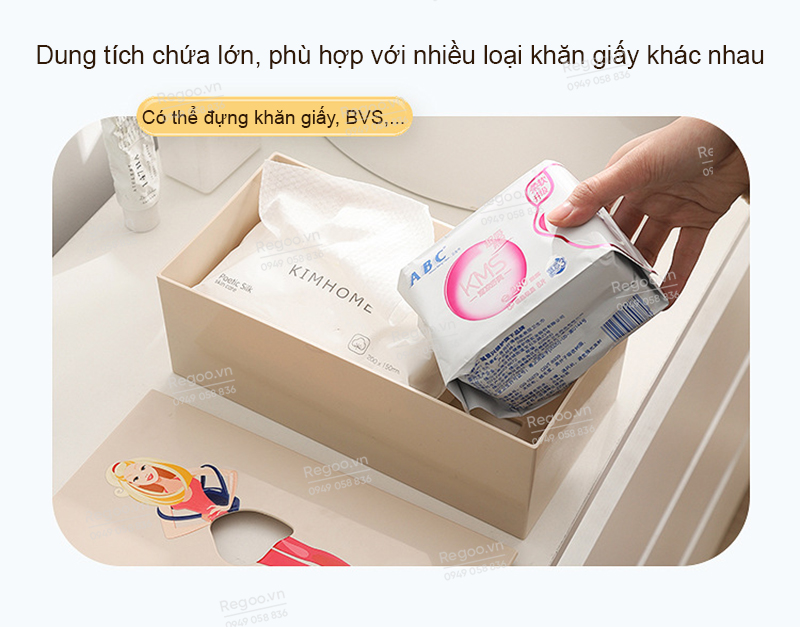 - Dung tích chứa lớn, dễ cất và dễ lấy giấy, giúp thao tác rút giấy hằng ngày gọn hơn so với để nguyên túi.