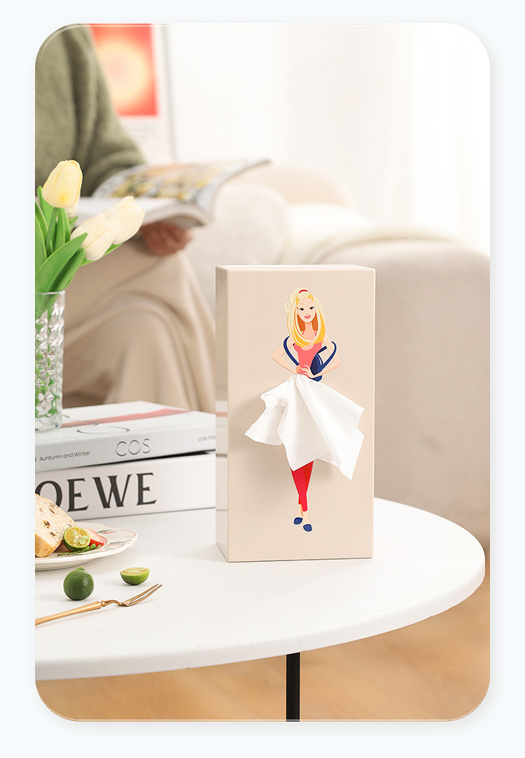 - Họa tiết cô gái tối giản, giúp sản phẩm vừa đựng giấy vừa làm decor nhẹ cho góc bàn.