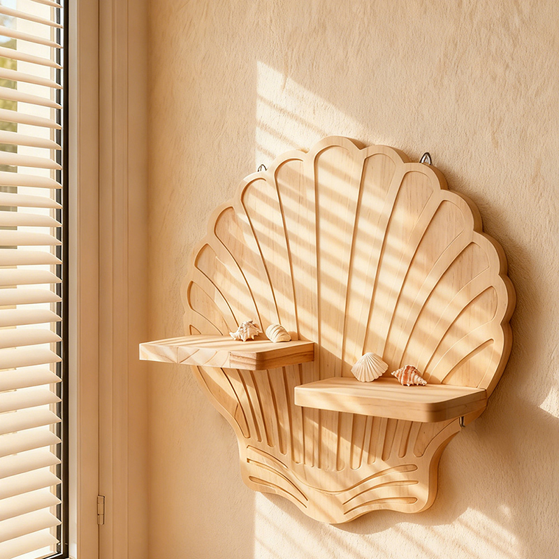 Nếu anh/chị đang muốn làm bức tường bớt trống mà không cần bày quá nhiều đồ, mẫu kệ treo tường vỏ sò này là kiểu decor khá dễ dùng. Form vỏ sò tạo cảm giác mềm mại, có chất boho nhẹ nhàng, hợp với những góc nhà thích tông gỗ mộc, ấm mắt và có điểm nhấn vừa đủ.