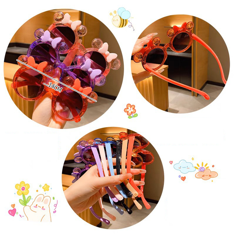 Kính râm trẻ em nơ tai gấu chống nắng UV400, kính mát bé gái phong cách dễ thương, kính chụp ảnh đi chơi cho bé