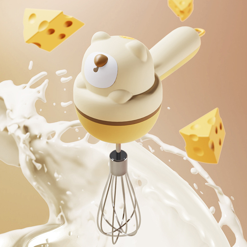Điểm tiện của mẫu này là có 3 mức tốc độ để điều chỉnh theo từng loại nguyên liệu, từ hỗn hợp lỏng nhẹ đến phần trứng hoặc kem cần đánh đều hơn. Tông màu vàng kem dễ thương, kiểu dáng xinh xắn, nhìn sạch sẽ và khá hợp với không gian bếp hiện đại. Trọng lượng khoảng 300g nên cầm không quá nặng, dễ cất gọn sau khi dùng.