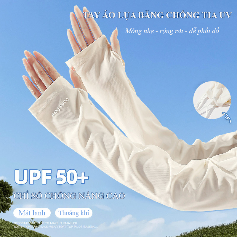 Ống tay chống nắng nữ Regoo RG641 freesize, vải lụa băng mỏng nhẹ, UPF50+, form rộng thoải mái