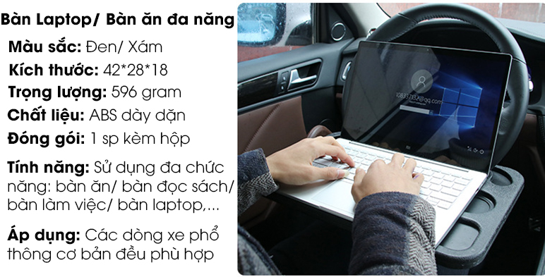 Khay đa năng gắn vô lăng ô tô, dùng làm bàn để laptop hoặc bàn ăn, bàn làm việc mini trong xe.