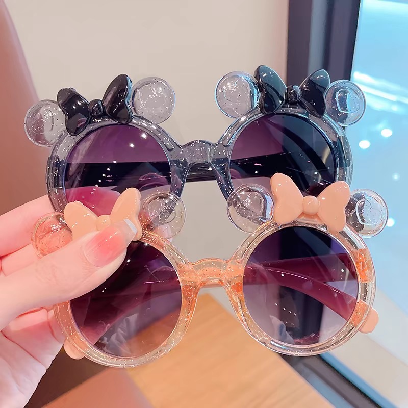 Kính râm trẻ em nơ tai gấu chống nắng UV400, kính mát bé gái phong cách dễ thương, kính chụp ảnh đi chơi cho bé